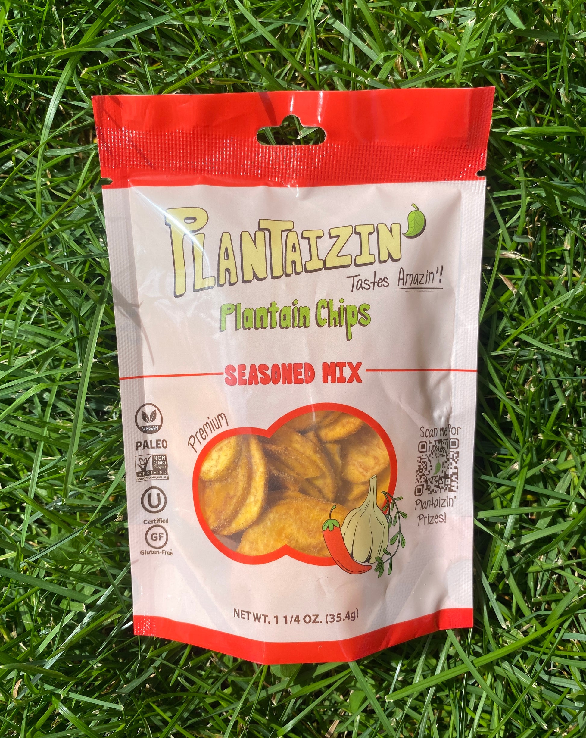 Our plantain chips are made from plantains grown and hand-harvested on small farms, and they’re packaged in a single-serve premium stand-up pouch that makes them easy to enjoy at home or on-the-go. You can also scan the QR code on our bags to access fun Plantaizin' prizes such as music playlists and recipes!
